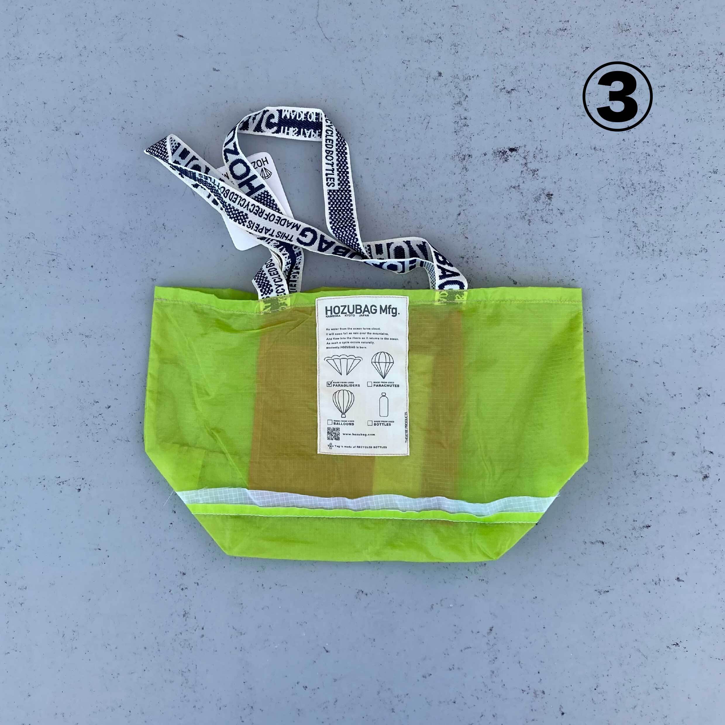 役目を終えたパラグライダーの生地を再利用して作られたHOZUBAG。軽くて丈夫なことに加え、機体から断裁する場所により異なる表情、カラーが表現され世界にひとつだけのお気に入りのバックを身につけることができます。